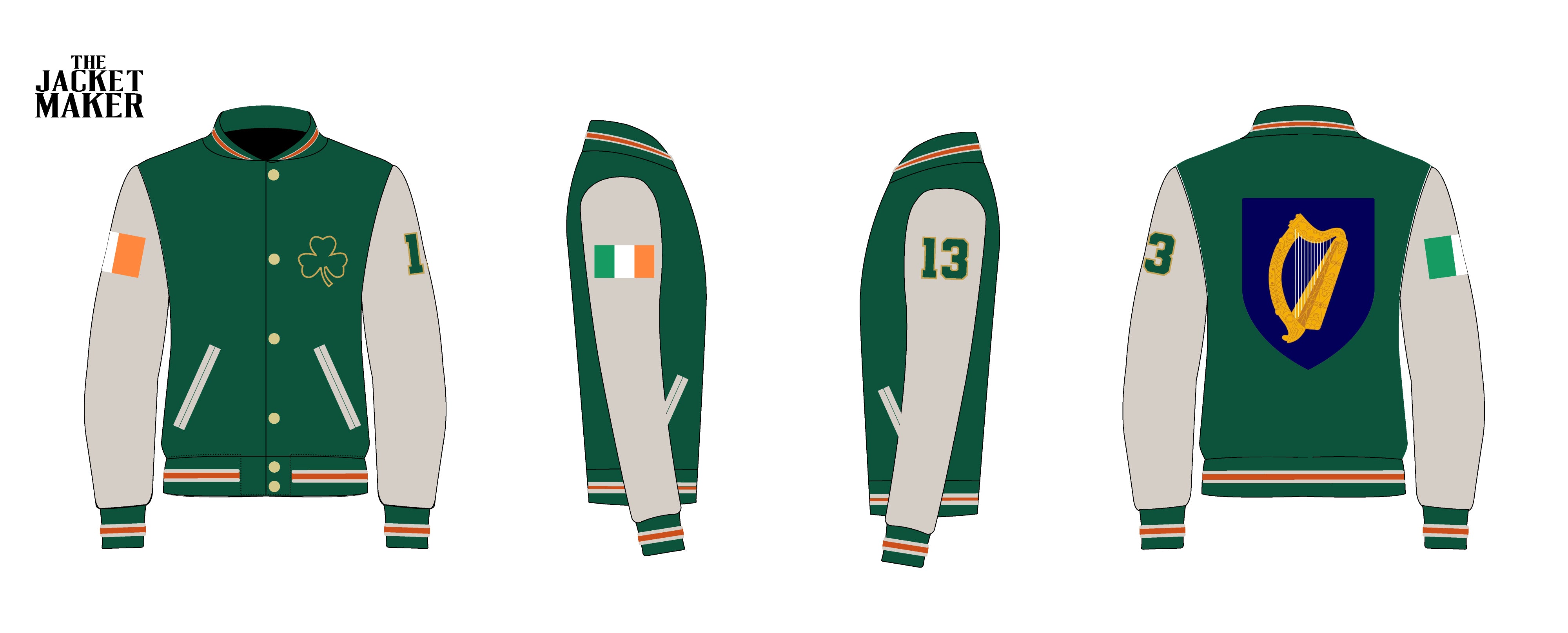 • Cuffs Style: Striped elasticated green rib knit cuffs with white & orange stripes (as per reference & illustration)