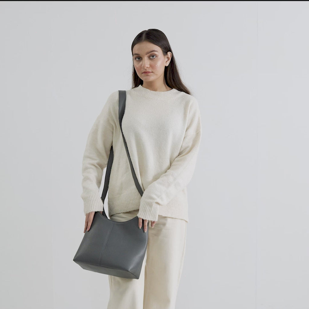 The Stefani Grey Leather Hobo Bag